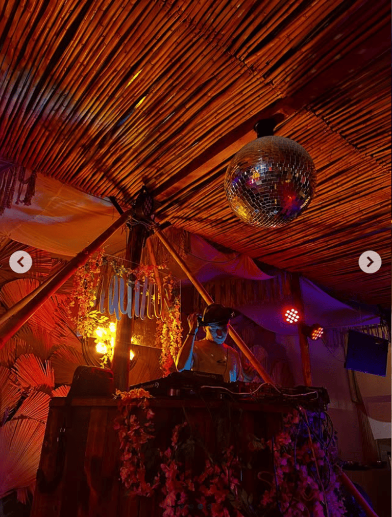 Algunas de las fotos más conmemorativas del evento que se desarrolló en un spot rodeado de sonrisas, luces cálidas y una ambientación exótica que transportaba directo al carnaval latino. Afro House, Latin House e Indie Dance fueron los géneros protagonistas de una fiesta llena de energía, baile y conexión.
